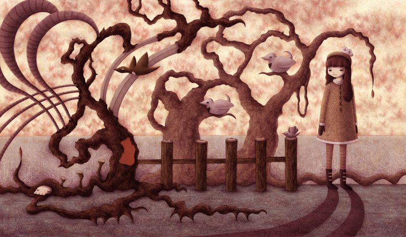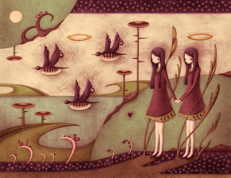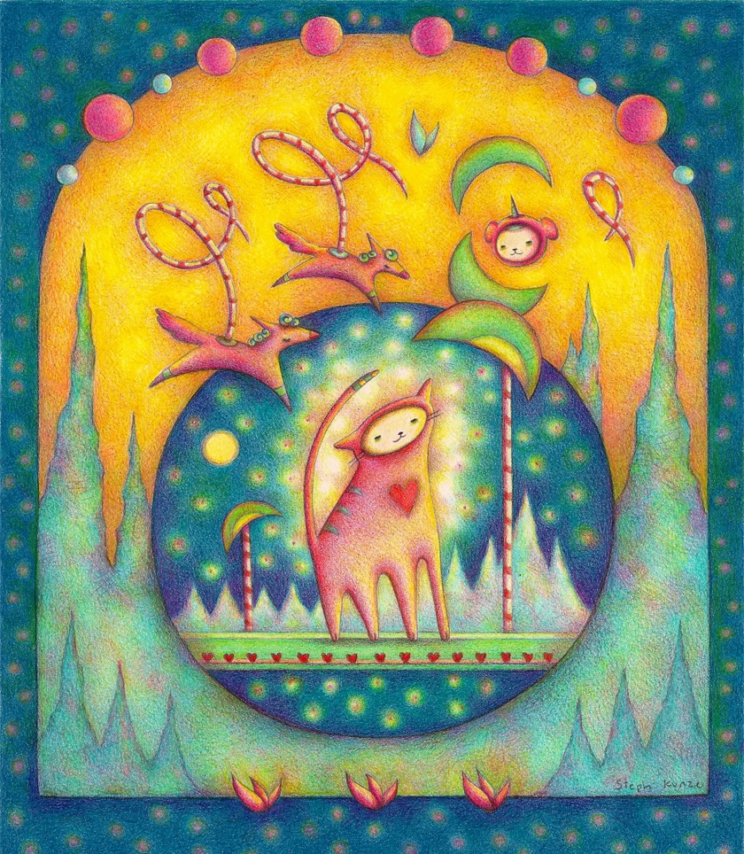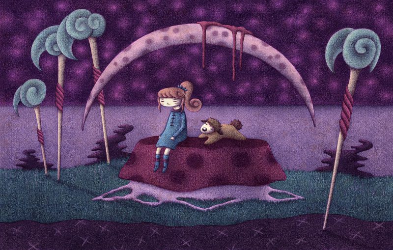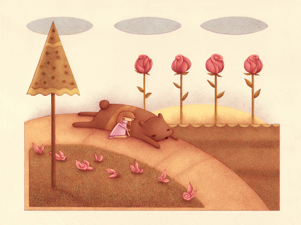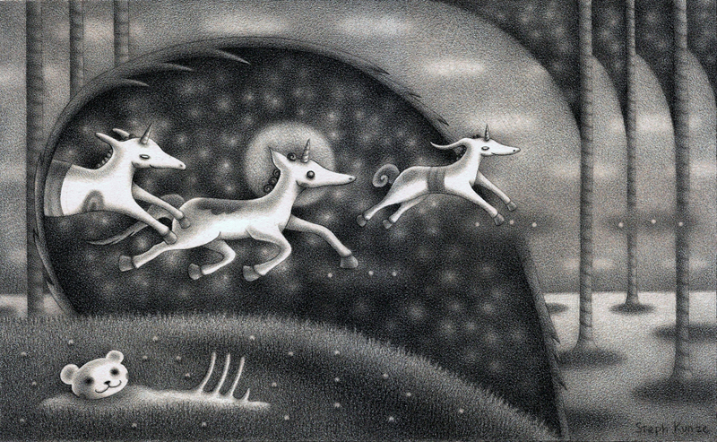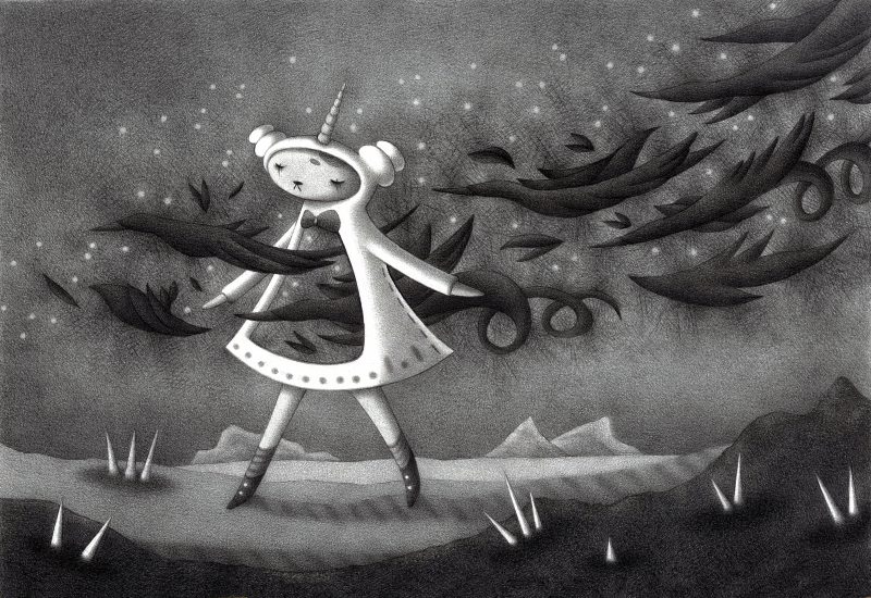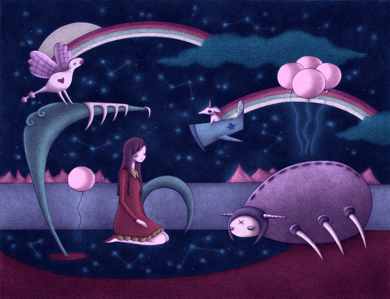 I create drawings depicting an enchanting world inhabited by children and creatures. Influenced by surrealists and children’s book illustrators, I seek to capture the inner life of my childhood self, exploring themes of introversion, melancholia, dreams and nightmares, and identity formation.